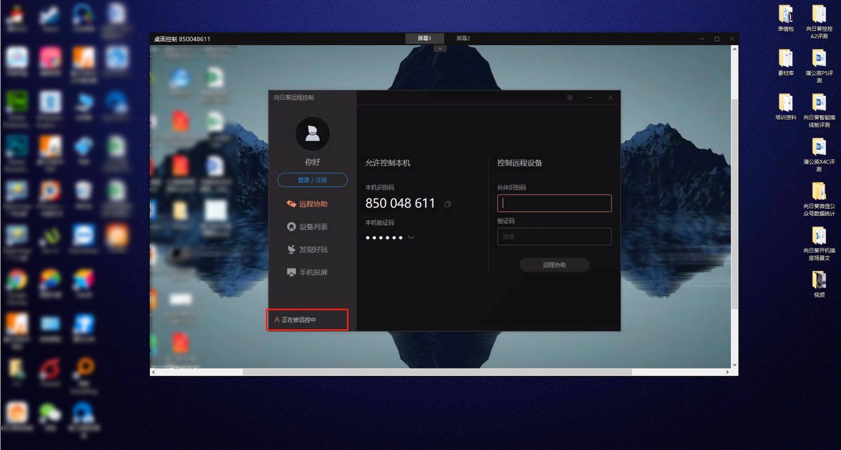 以电脑控制电脑为例,当远程控制连接上之后,被控端的软件界面会提示“正在被远控中”,控制的过程中有禁止对方输入、录像、截屏、白板等实用功能,还能自由调节远控画面的分辨率,在整体体验上画质清晰且流畅。