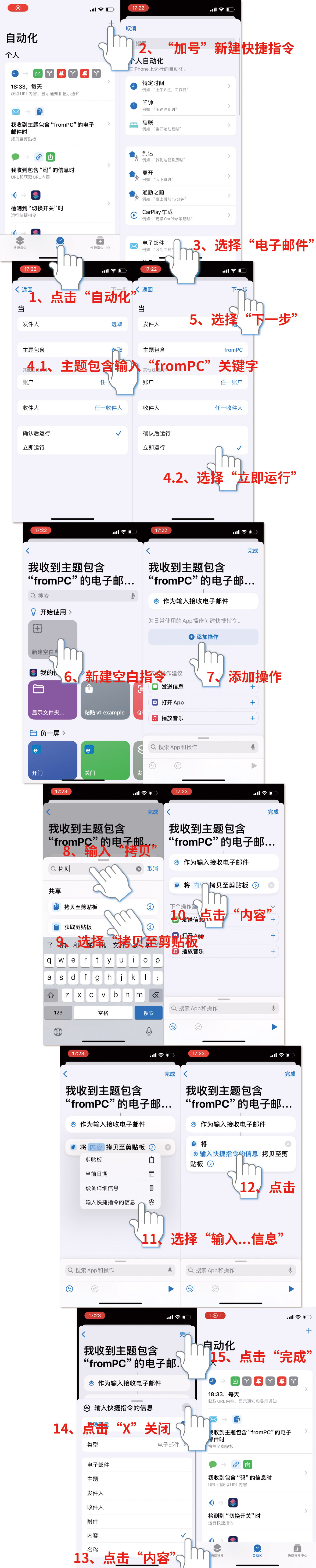确认iPhone的iCloud邮箱启用后,我们创建一个基于邮箱的快捷指令。
