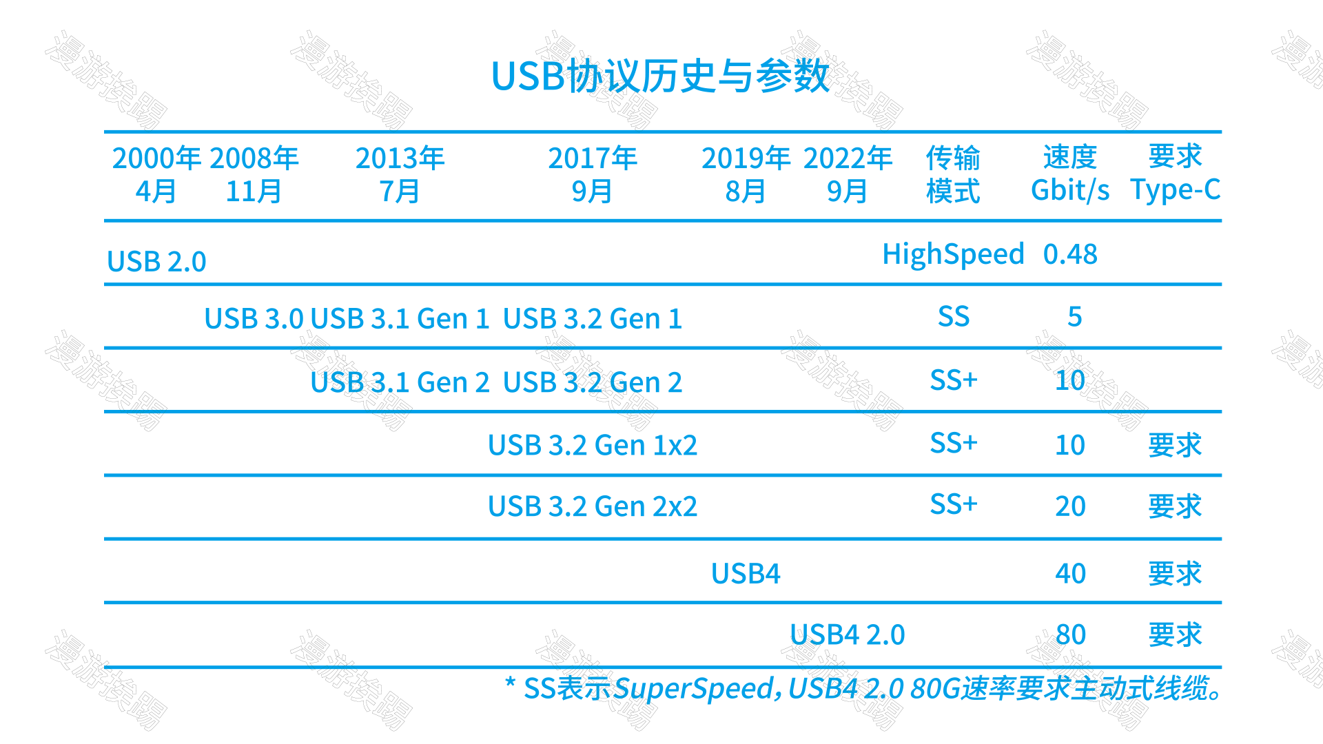 USB4 Version2.0 宣布!快来了解新标准 也许你还没用上USB4, 但, USB4 Version 2.0已然正式推出! 快来看看USB4 Version 2.0新协议的主要更新: 最高速度80Gbps,是USB4的两倍 需要使用主动线缆达到80Gbps 回顾USB的历史, 总让人忍不住要吐槽 USB-IF 的命名尿性 挨踢君依然为大家精心整理USB版本历史与主要参数: 怎么样,是不是一目了然? 记得点赞支持挨踢君制作、推送新内容~ 或者评论区说说你的想法! 2022-09-03 usb 雷电 雷雳 接口 usb4 type-c